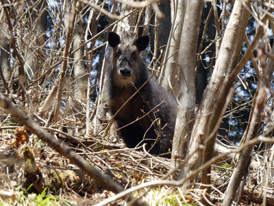 ![]() 登山道の脇道に入ってみたらばカモシカが出てきました。しばらくこちらをじっと見ていました。 |