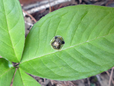 ![]() ジンガサハムシの仲間です。もうかなり遅い時間だったこともあり、じっとしていました。 |