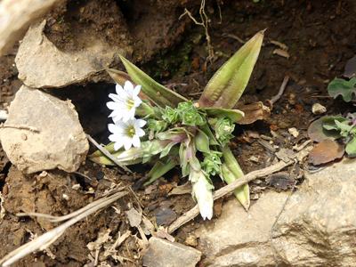 ![]() コケリンドウ まだ咲き始めです。上の写真は根生葉の様子がよく見えます。 |