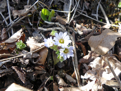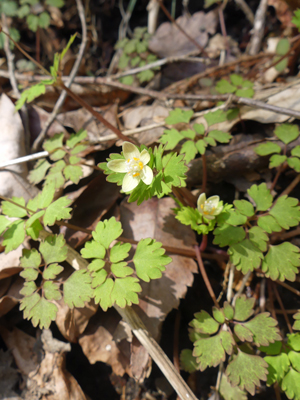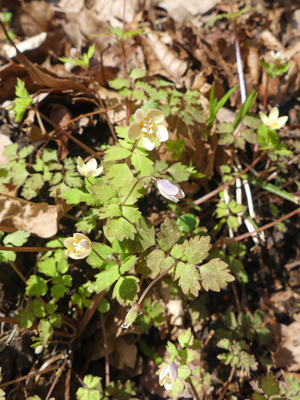 コキクザキイチゲ 箱根の駒ヶ岳で見て以来、ひさしぶりに見ました。花の色は白が多かったですが左上のような薄青紫のものもありましたし、左のような少しピンクがかった薄紫色の花もありました。 |