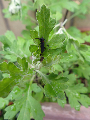 庭に菊にキクスイカミキリが来ていました。家の近くで時々菊の芽がしおれているのを見たことがあったのですが成虫を見たのは初めてでした。(2024/04/21 記)