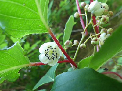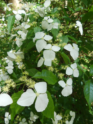 ![]() サルナシ 明るい所のものは終わり掛けでしたが、木陰のものは綺麗に咲いていました。 |