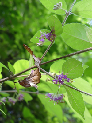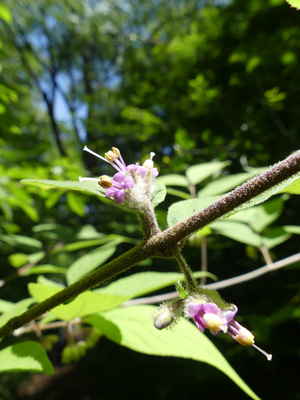| ムラサキシキブ こちらは花が葉の付け根から咲いていたのでムラサキシキブだと思います。 |
