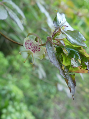 | バイカツツジ 標高が低いせいか、もう咲いていました。不思議な形の花です。 |