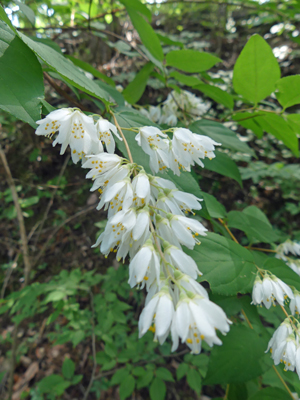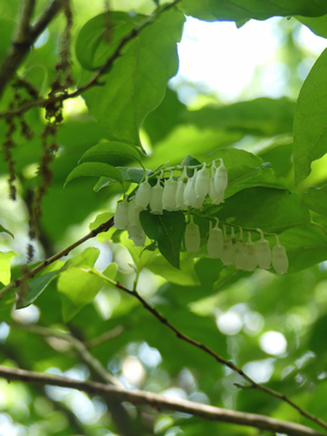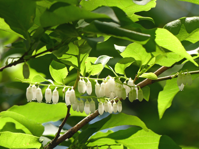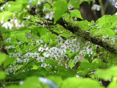 エゴノキ 日当たりの良い所では散っていましたが、谷間の湿ったところではまだ咲いていました。 |
