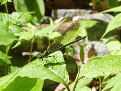 ![]() カワトンボが居ました。胴体の緑色が綺麗です。 |