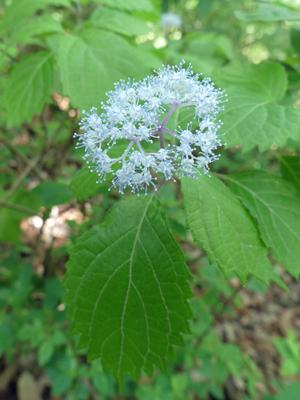 | コアジサイ 咲き始めました。こちらは青みが強かったです。 |