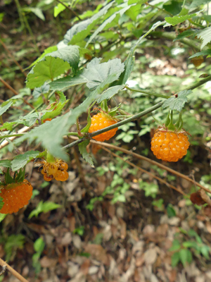 | オカタツナミソウではないかと思いますが、合っているでしょうか。少し青かぶりして、うまく色が出ていないです。 | モミジイチゴの実が成っていました。少しつまんで食べました。 | |