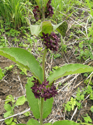 | フナバラソウ 濃いあずき色の花が風変わりです。 |