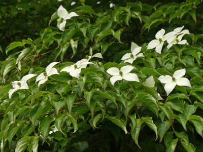 ヤマボウシ かなり上の方で咲いていたので、望遠で撮りました。 |