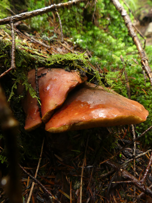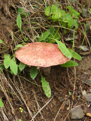 | 薄赤い色のキノコが生えていました。こちらも美味しそうに見えました。 | ||