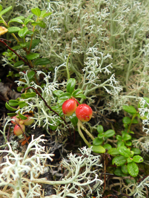 | コケモモがミヤマハナゴケに囲まれていました。 | ||