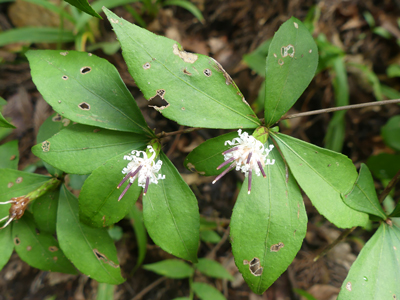 ![]() コウヤボウキ 樹林下の登山道の脇でいくつか咲いていました。 |