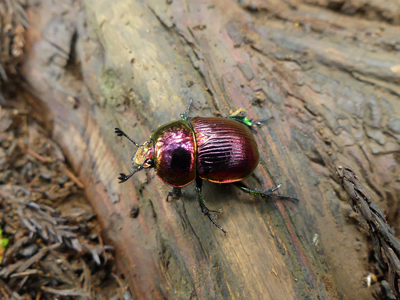 オオセンチコガネ 登山道に降りているところを撮りました。普通のセンチコガネと思われるものも飛んでいました。 |
