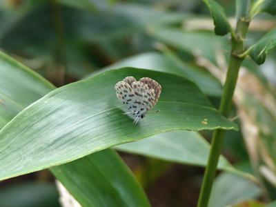ゴイシシジミ 山頂の手前の笹の多いところで何頭か舞っていました。 |