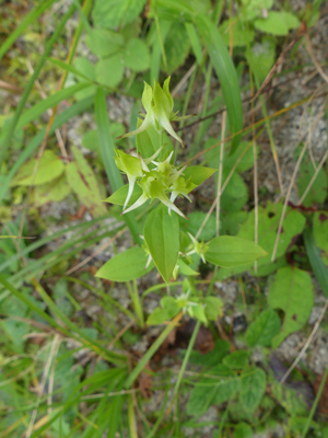 | ヤマジノホトトギス 樹林下の車道沿いにいくつか出ていました。 |