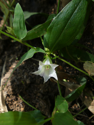 ツルリンドウ 咲き始めです。今回は2箇所でしか見れませんでした。 |