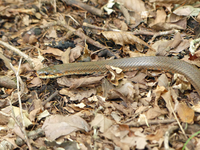 ![]() ヒバカリが居ました。丹沢で見たものと同じく、温和しい印象でした。 |