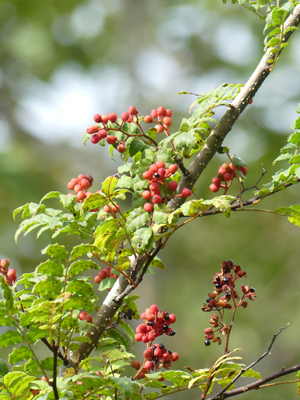 | サンショウ 実が熟して黒い種が見えていました。 |