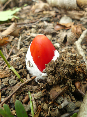 タマゴタケ 幼菌が顔を出していました。この近くの成菌もありました。 |