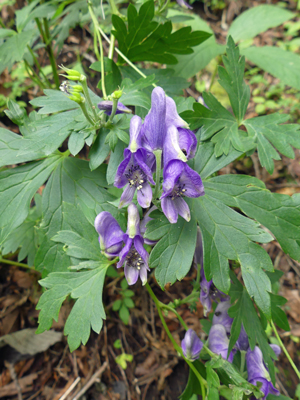 | トリカブト 登りはじめの樹林下でいくつか咲いていました。 |