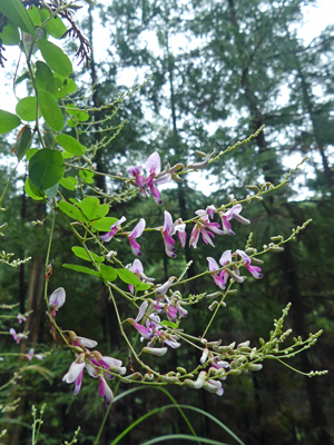 | ヤマハギ 登山道に向けて綺麗に垂れ下がって咲いていました。 |