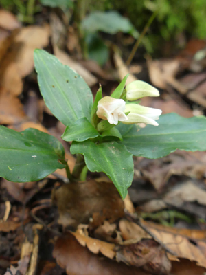| アケボノシュスラン 詳しい方に咲いている場所を教えて頂きました。5株ほど咲いていましたが、暗かったり遠かったりでこの2株を写真に撮りました。 |