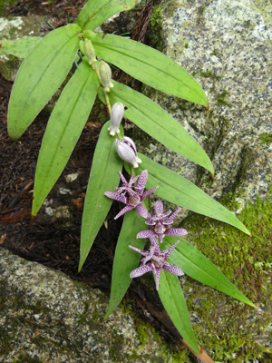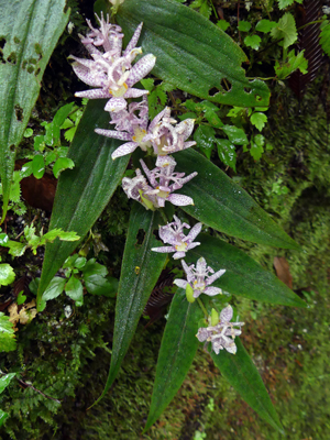 | ホトトギス 左の花は標準的な色と思いますが右の花は色が濃かったです。このように濃いものもいくつかありました。 |