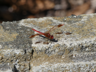 | ミヤマアカネ 登山道ではなく、途中の道沿いのブロック塀のところにとまってくれました。 |