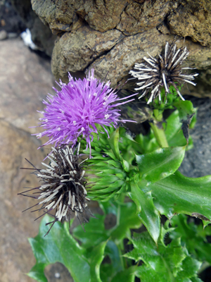 | ハマアザミ あまり数は多くありませんでした。海岸植物らしく葉が厚いです。 |