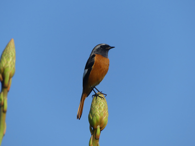 ジョウビタキ 珍しく雄1羽雌2羽が一緒に居ました。渡ってきた直後で一緒に行動していたのでしょうか? |