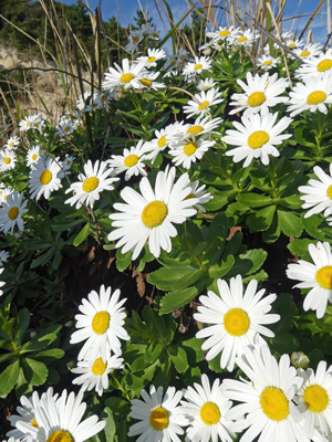 ![]() コハマギク 近くにあった株は咲いておらず、崖の上に咲いていたものを望遠で撮りました。花はハマギクほどではないですが、かなり大きいです。 |