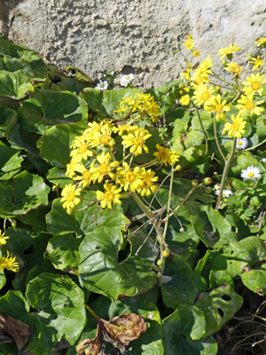 | こちらも崖の上に咲いていたものです。葉の形はハマギクと違いますし、ハマギクは低木ですが、こちらは草本です | ||