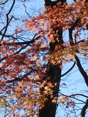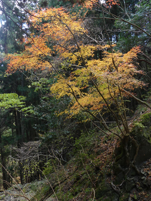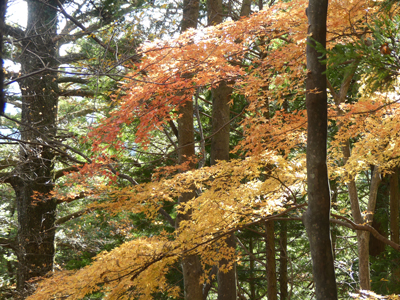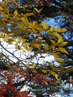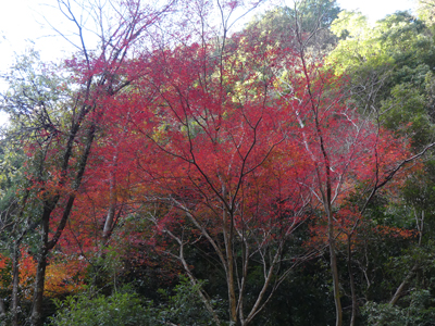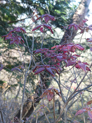| モミジの仲間もまだ紅葉していました。山頂に近いところは落葉していて冬景色になっていました。 | ||