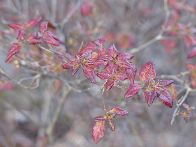| こちらもバイカツツジと思います。紅葉も光の当たり具合でずいぶん違って見えます。 | ||