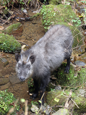 | カモシカが沢で水際の草を食べていました。少し近づいたらば気付かれましたが、刺激しないようにそっと立ち去りました。 | キッコウハグマ 1箇所で数輪が咲き残っていました。 |