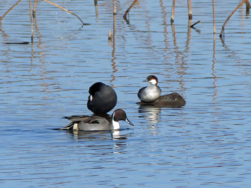 | 石?の上でミコアイサの雌が休んでいました。雄も遠かったですが何羽か見ました。 | ||