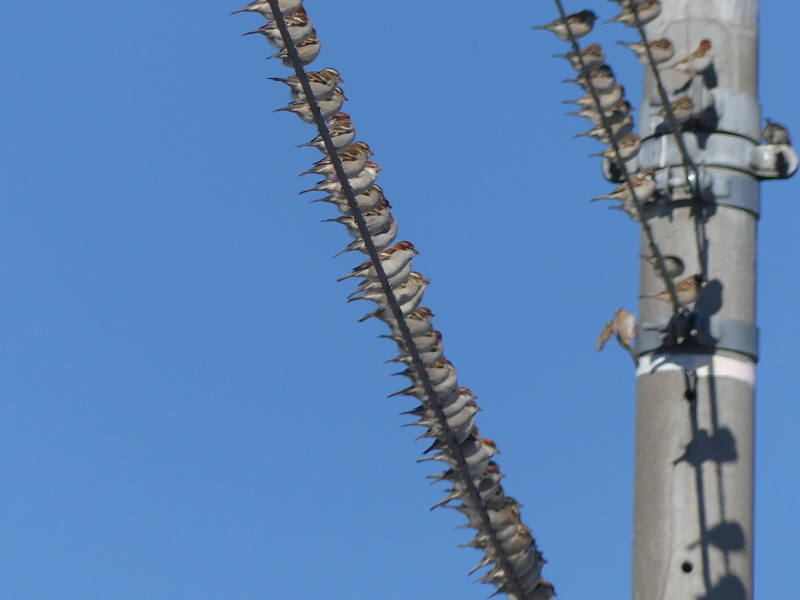 | ニュウナウスズメ 田圃に降りて餌を食べては電線にとまり、を繰り返していました。 |