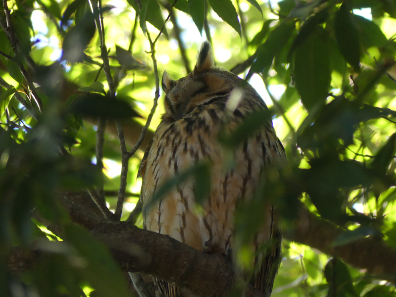 | 場所を変えて正面から撮りました。ちなみに、ときどき首を回していましたが、目は開けてくれませんでした。 | ||