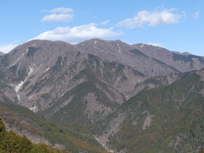 ![]() 丹沢の山なみです。この写真には写っていませんが、遠くの山では雪を少しかぶっているところもありました。山頂からの丹沢の展望は大昔はよく見えましたが、植林の木が伸びて見えづらくなったので、横道に入って撮りました。 |
