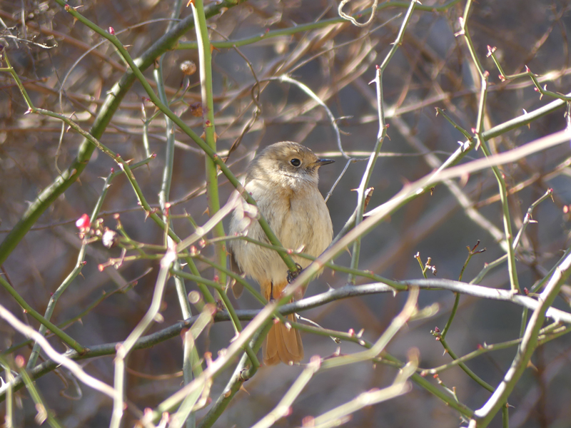 | ジョウビタキ 登山の途中に見かけた冬鳥はこの雌一羽だけでした。 |
