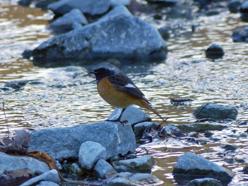 | ジョウビタキ 中津川の河川敷に居ました。水を飲みに来ていました。 |