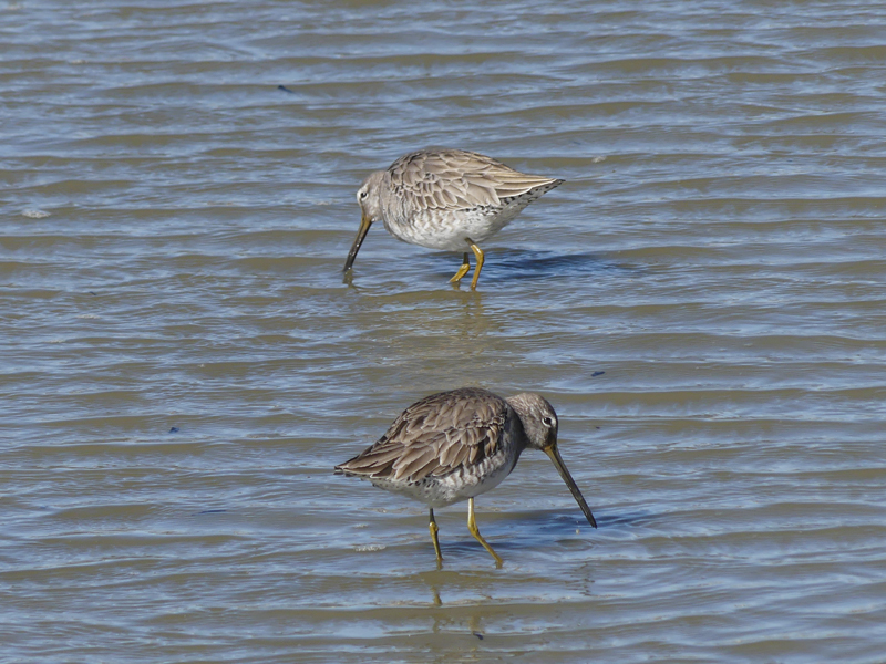 | オオハシシギ 2羽が一緒に行動していました。近づいていた時に撮りました。 |