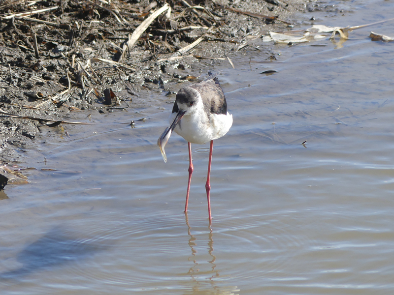 | セイタカシギ 場所によっては池のような水たまりになっているところがあり、そこで餌を探していました。昔は谷津干潟などでよく見ましたが数が減ったと思います。今回は近くで見ることができたので良かったです。 |