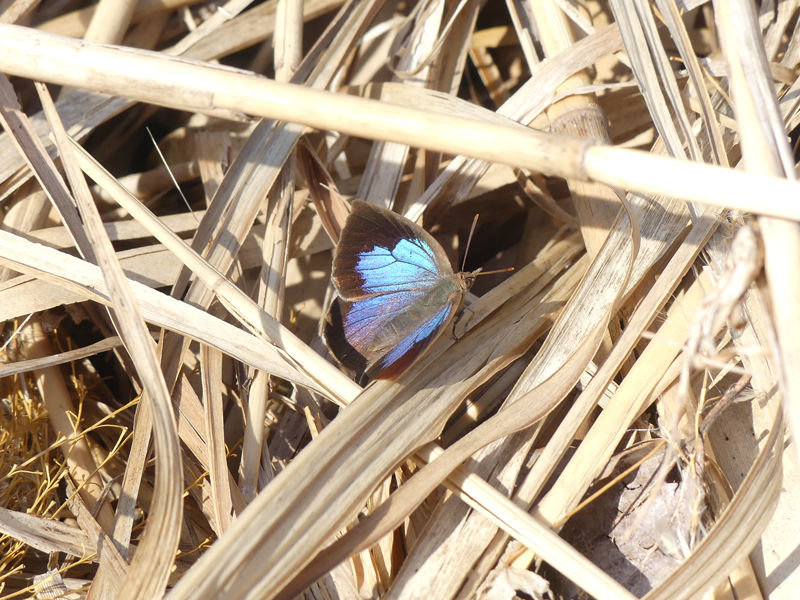 | 越冬のムラサキシジミがいました。ほとんど翅が傷んでいなくて、とても綺麗でした。 | ||