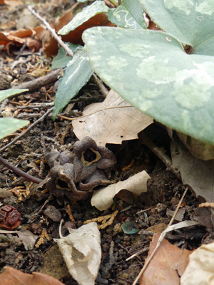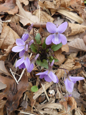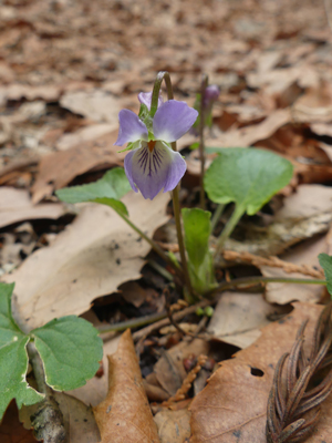 アオイスミレ 葉は多かったですがまだほとんど咲いておらず、少し日当たりのあるところでやっと1つ花を見つけました。 |