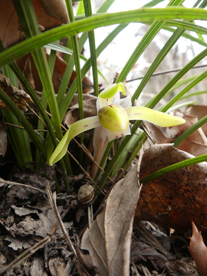 | シュンラン 探しましたが咲いていたのはこの株だけでした。 蕾をつけているものも少なかったです。 |