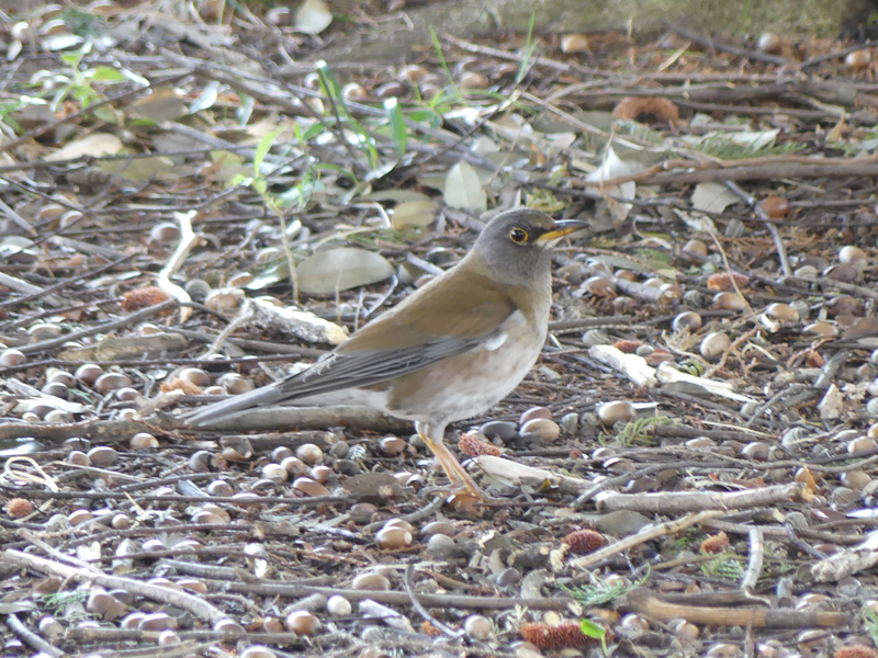 | シロハラ 木陰の地面で餌を探していました。 |