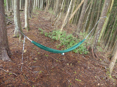 ハンモックをだいぶ前に買っていたので試してみました。KAMMOKのRoo Singleです。設営はとても簡単でした。ハンモックにまず座ってから寝てみると不思議な感じで、なかなか気持ち良かったです。 靴を脱いで使うことを考えて小さなマットを持ってきたのですが、そこをめがけて足をうまく降ろせるかどうかわからなかったので今回はそのマットを使わずに、靴をはいたまま乗り降りするところまで試しました。 |