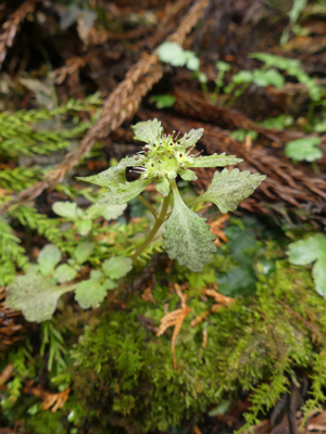 | コチャルメルソウ 沢沿いに咲いていました。昨日の雨のせいか少し増水していて近づきにくかったです。 |